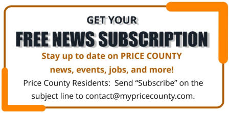 As a mostly volunteer effort, and to not overwhelm your inbox, we send the "News Highlights" email once or twice per month. We never sell or share your email address. REGISTER FOR FREE AT MY PRICE COUNTY To create a profile, you will need to visit the registration page. Activation will take about two minutes. During registration, select "Price County" as your county of interest to get all the features for Price County.